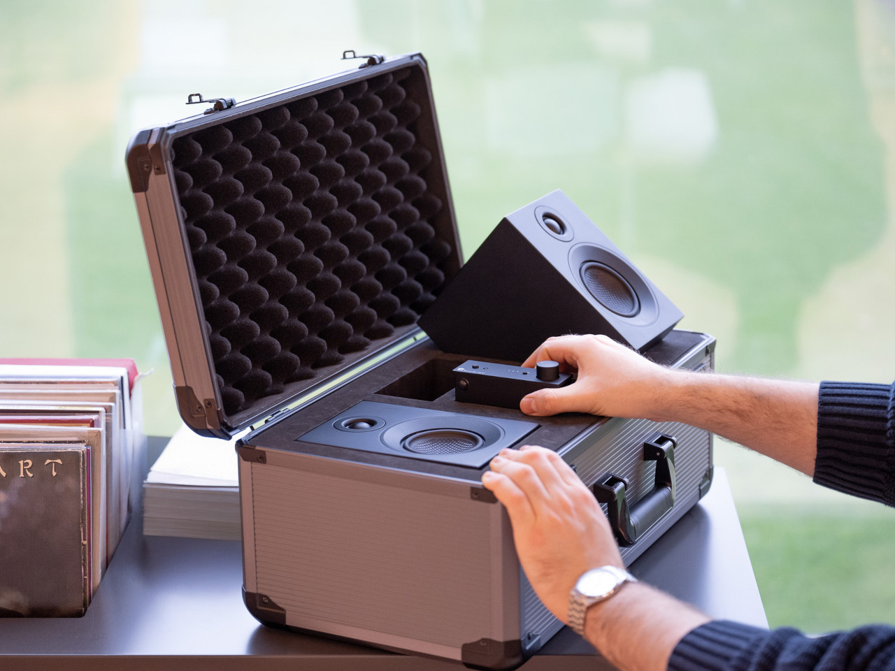 Enhance your listening experience with the Travel Set – a compact, high-quality audio solution perfect for music lovers on the go. This all-in-one set includes speakers, a stylish amplifier, and all necessary cables, neatly packed in a durable flight case for effortless transport.