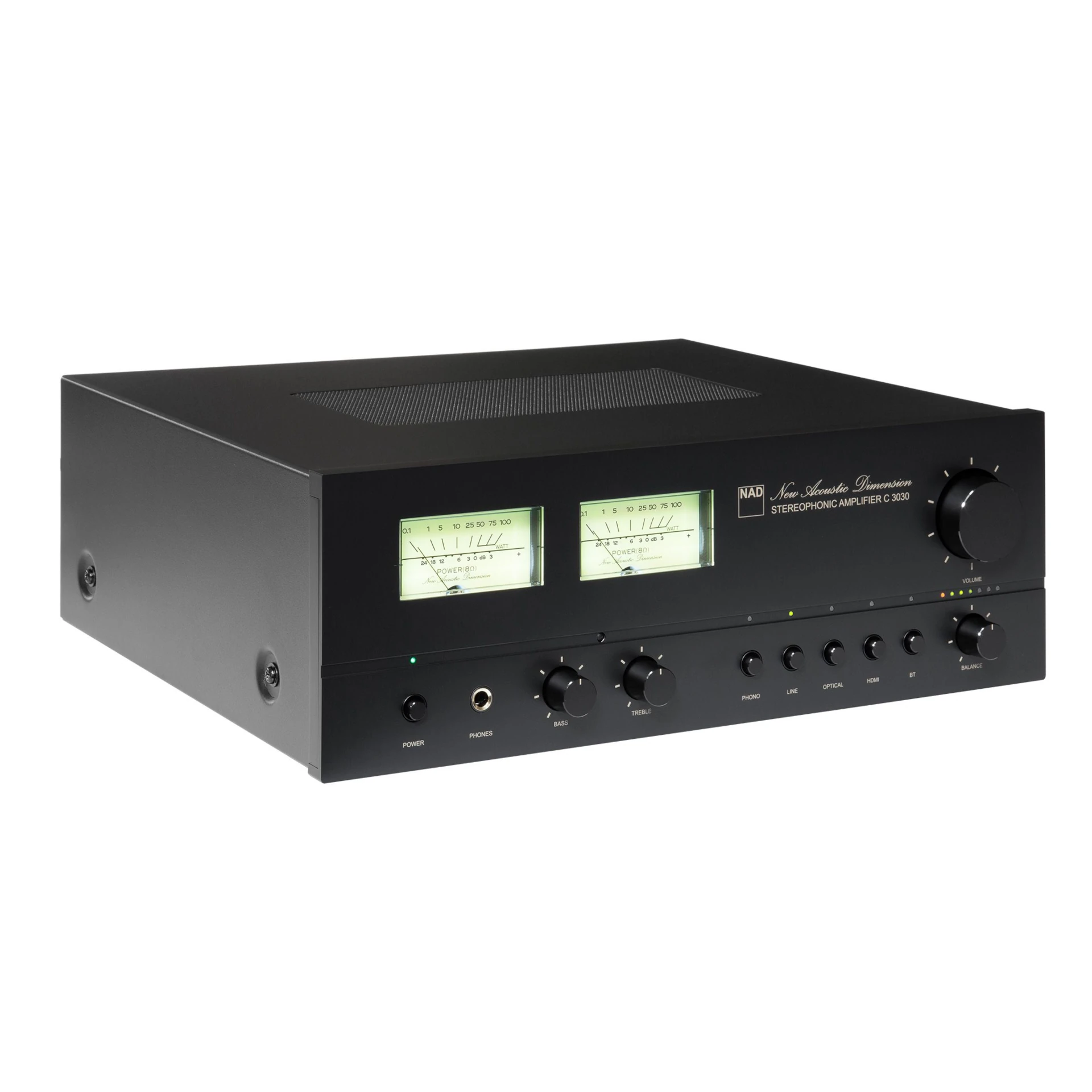 Der NAD C 3030 vereint Retro-Design mit der Leistung und den Funktionen, die man von einem modernen Vollverstärker erwartet. Mit Proportionen, die an den Look früher NAD-Designs erinnern, besticht er durch traditionelle Details wie VU-Meter und den klassischen Schriftzug, die ihm Charakter und Unverwechselbarkeit verleihen.