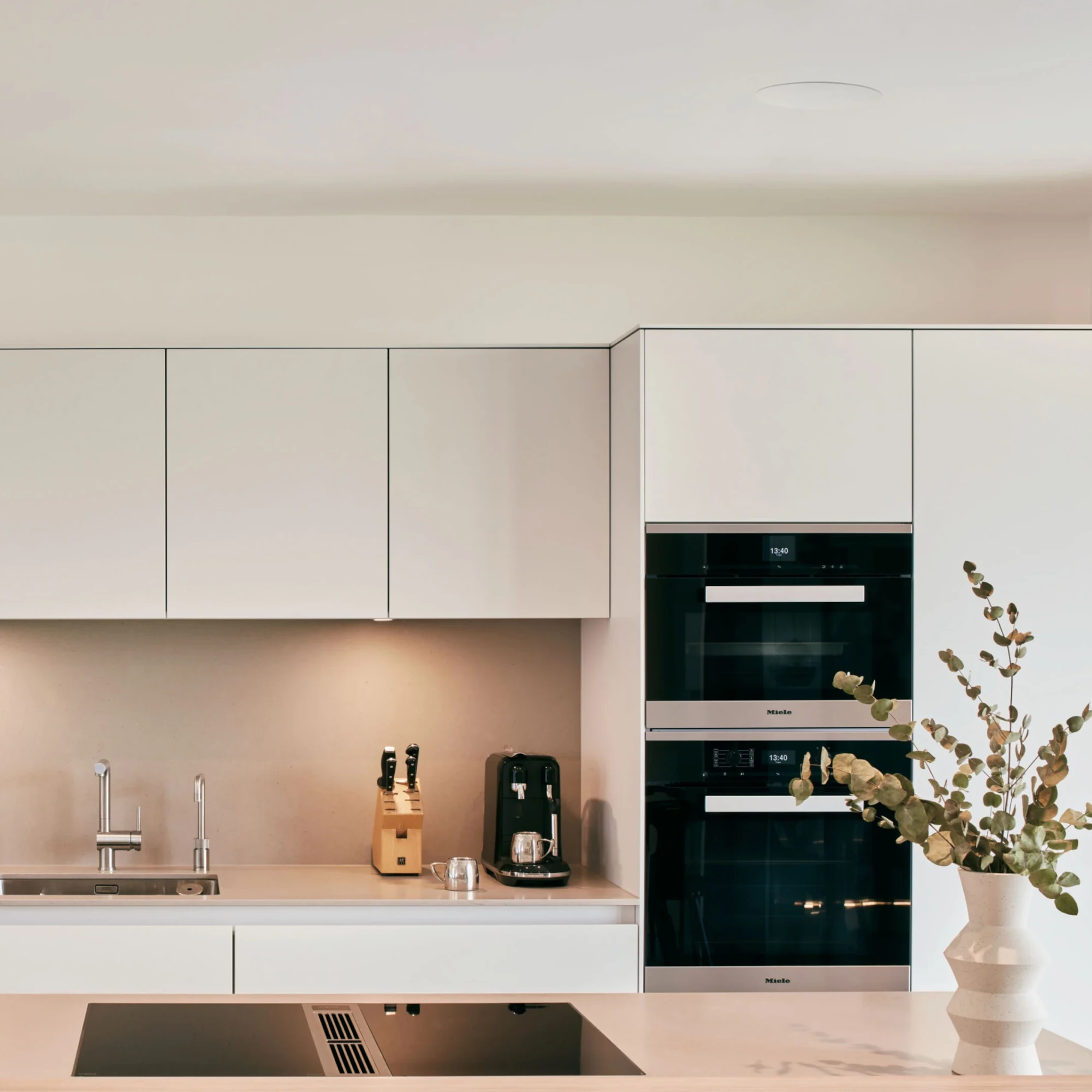 Der Lautsprecher ist für eine dezente Integration in die Decke konzipiert. Das magnetische Frontgitter ist lackierbar und ermöglicht eine nahezu unsichtbare Optik.