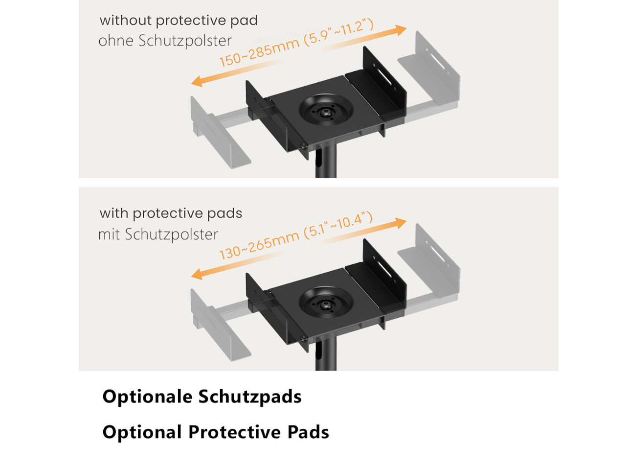 | Einstellbare Klemmfixierung | 130 - 285 mm |