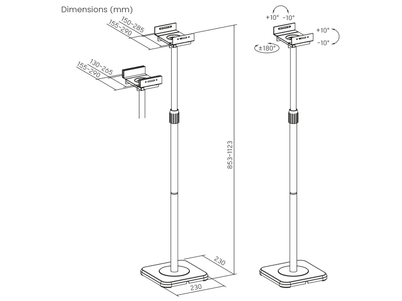 - Höhenverstellbar von 858 - 1.123 mm (85,8 - 112,3 cm).